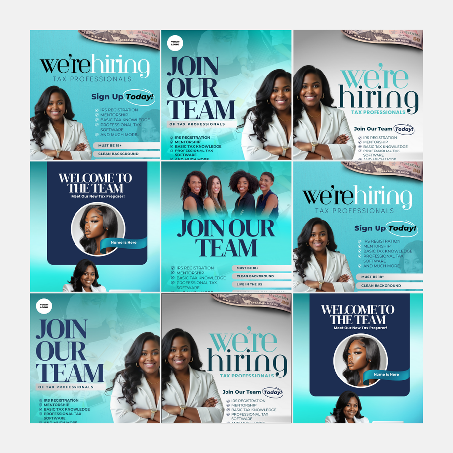 Blue & White Tax Flyer Template Bundle – Join Our Team!